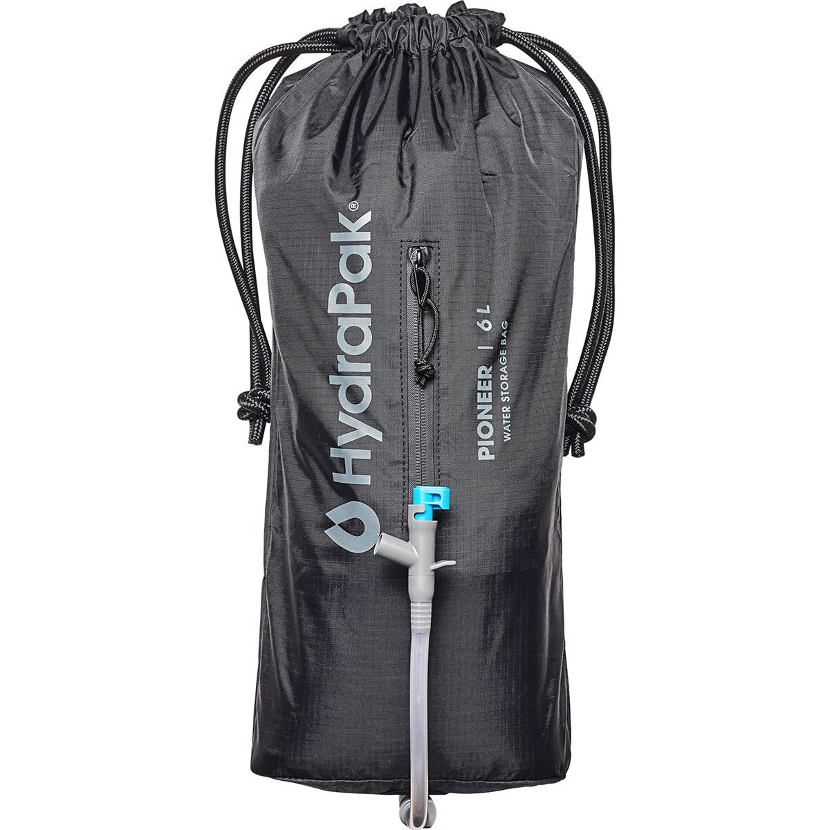 Built for long days on the trail, the lightweight Hydrapak Pioneer Collapsible Water Storage and Dispensing System is ideal for backcountry group adventures. The innovative two piece construction features a removable water storage reservoir and an abrasion resistant outer sleeve. The reservoir's wide opening is quick to fill and closes tight with a slide-seal top. Nylon drawstring cords make it easy to hang or carry and the dispensing tap is ideal for filling bottles and washing cookware at camp. Lightweight and packable, it folds down small into its outer shell. An integrated storage pocket stores the included 28 mm filter adapter when not in use.