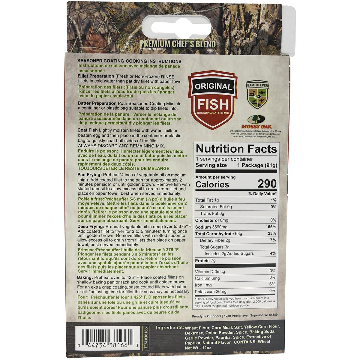 The Game Keeper Fish Breading and Batter Mix features fish seasoning made from premium chef's blend. This original flavor is sure to be a hit! It coats up to 4 lbs. of fish and includes instructions for every step of the way, from fillet and batter preparation to coating to your choice of cooking (pan frying, deep frying, or baking).