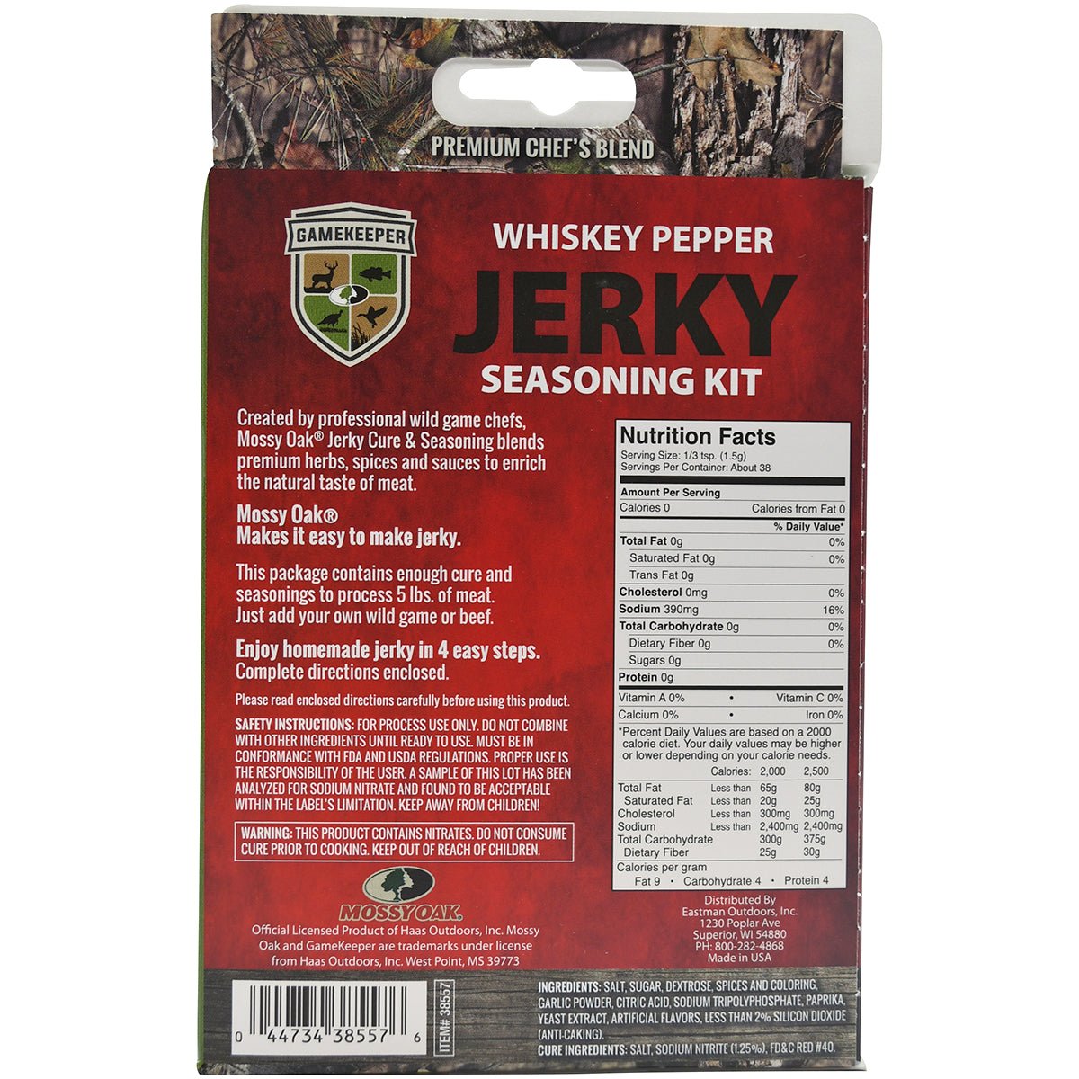 The Game Keeper Whiskey Pepper Jerky Seasoning Kit includes seasonings and cure to season up to 5 lbs of meat. Created by professional wild game chefs, it blends premium herbs, spices, and sauces to enrich the natural taste of meat. This seasoning kit makes it easy to make jerky in just 4 simple steps (complete instructions included). Just add your own wild game or beef!