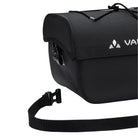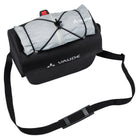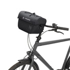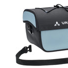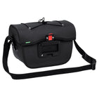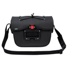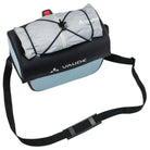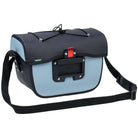 The Aqua Box bike handlebar bag made from recycled materials keeps everything within sight and reach. The waterproof handlebar bag can be opened with one hand and has an additional compartment with zip inside the large main compartment. It's got a detachable strap so you can carry it comfortably over your shoulder. An elastic holder on the lid allows you to attach practical clear bags for navigation (Beguided small, Beguided big – sold separately) or quickly stow away gloves or a windbreaker. The handlebar bag Aqua Box is KLICKfix compatible, which means that the adapter plate is pre-mounted and the KLICKfix adapter can be selected to fit exactly on the handlebar (standard or e-bike) (sold separately). The extremely sturdy handlebar bag was manufactured with hf-welded waterproof seams and a blend of 100% recycled polyester and 100% recycled polyamide.
