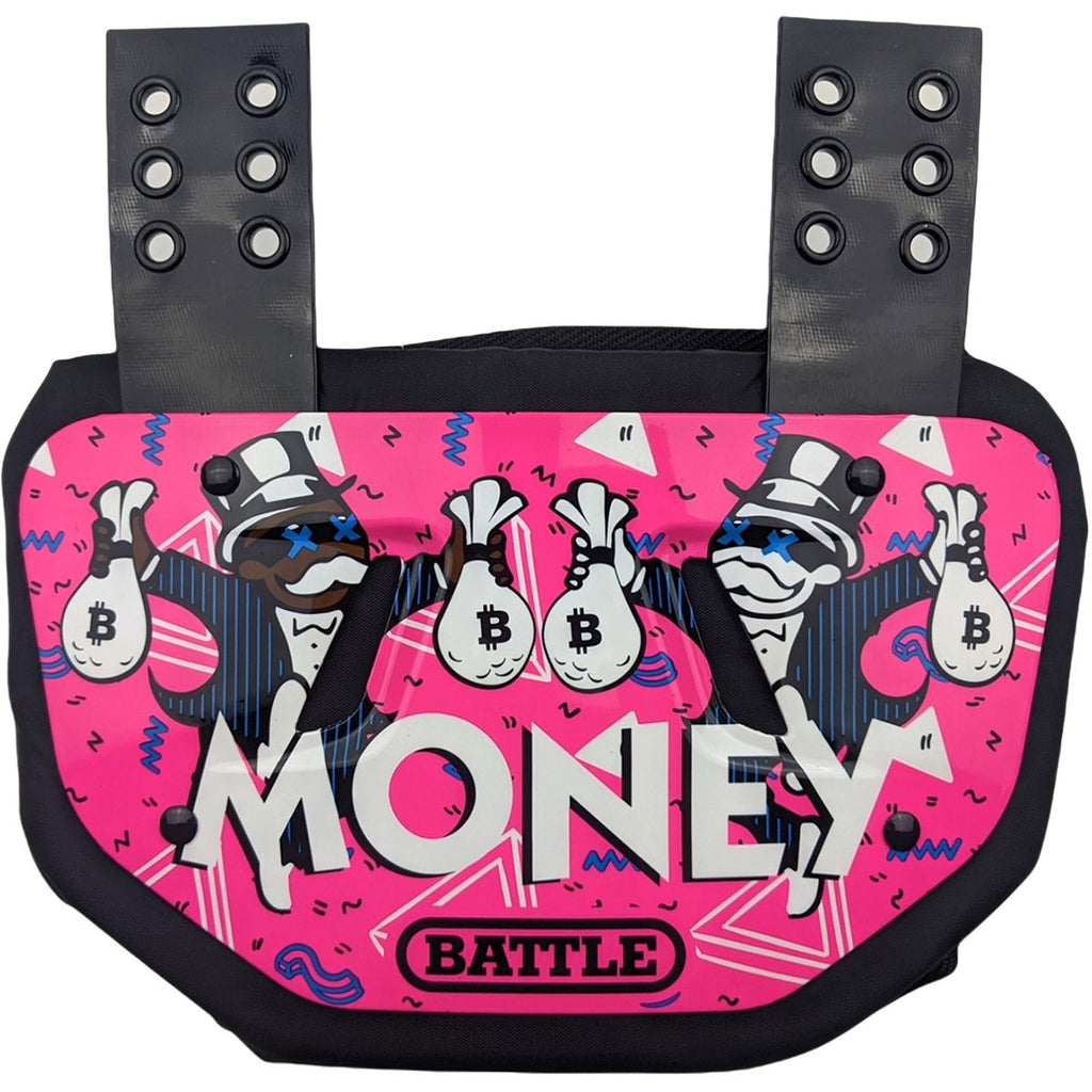 The Battle Sports Money Man Protective Football Back Plate is the best football equipment on the market. This specially designed curved back plate provides maximum protection to your lower back and blind side areas. It features a hard outer shell and contoured foam for great coverage while showing off your style. This back plate gives the perfect balance between high-impact protection and true comfort.