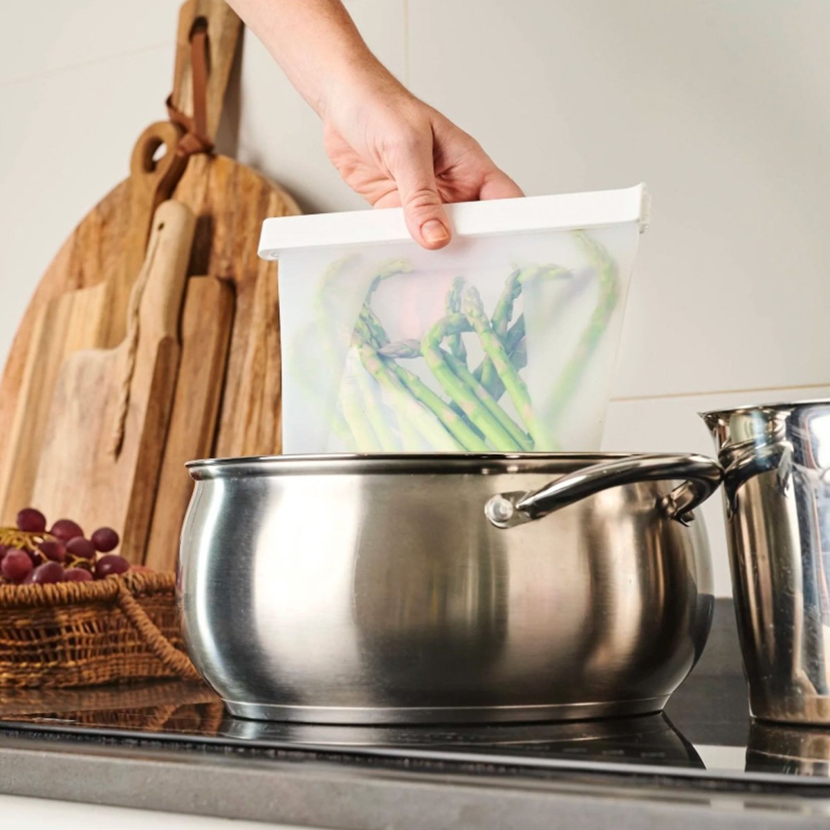 The Humangear GoPouch in small is a reusable, flexible, and leakproof silicone storage pouch. It's designed as a sustainable alternative to disposable plastic bags for food, toiletries, or tech accessories. The small size holds a maximum of 400 ml or 1.5 cups.