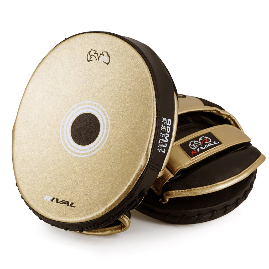 The Rival Boxing RPM11 Evolution Punch Mitts are made of a supple, ultra-resistant rich PU microfiber. This mitt was built to last and perform with a soft and comfortable nash inner palm, a convenient grip bump, and an ergonomically designed hand compartment. This mitt gives you the feeling and performance you're looking. The RPM11 Evolution Punch Mitts will shine in its performance, strength, durability and the power to withstand the hardest workouts. These mitts are designed using high-density layered foam padding which provides maximum absorption against power punches without negating the need for speed. Its small, pre-curved, semi-parabolic shape with a stabilizer wrist strap and protective finger cover makes this mitt the quality you have come to expect from Rival. In keeping with the standards of innovation, Rival has once again done something to revolutionize the industry. Rival is proud to introduce punch mitts in S/M or L/XL sizes for the first time ever. The RPM11 Evolution Punch Mitt is another outstanding addition to an incredible and ever-growing line of Rival professional punch mitts.