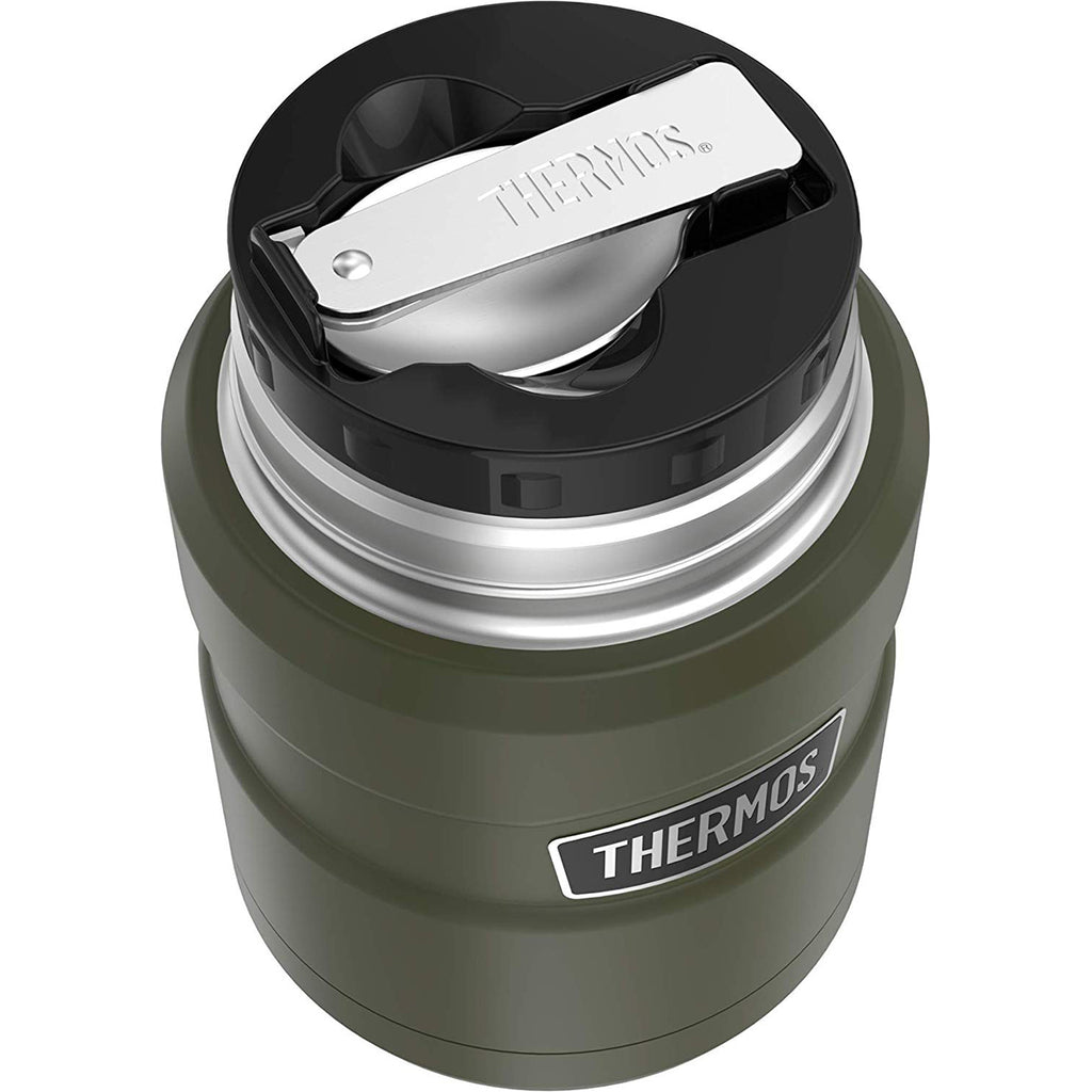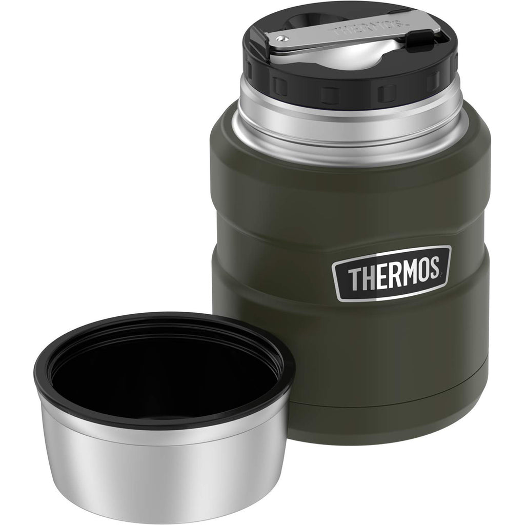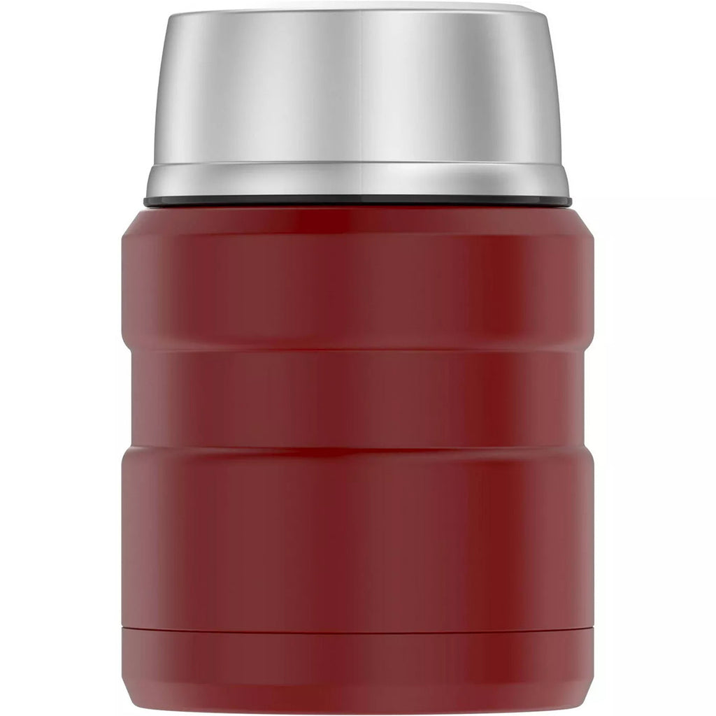 The Thermos 16 oz. Stainless King Vacuum Insulated Food Jar is designed with a wide mouth opening that is easy to fill, easy to eat from and easy to clean. The Vacuum Insulation technology keeps contents hot for up to 9 hours and cold for up to 14 hours. As a bonus feature, this food jar comes with a foldable stainless steel spoon that fits right into the lids, eliminating the need to pack separate utensils.