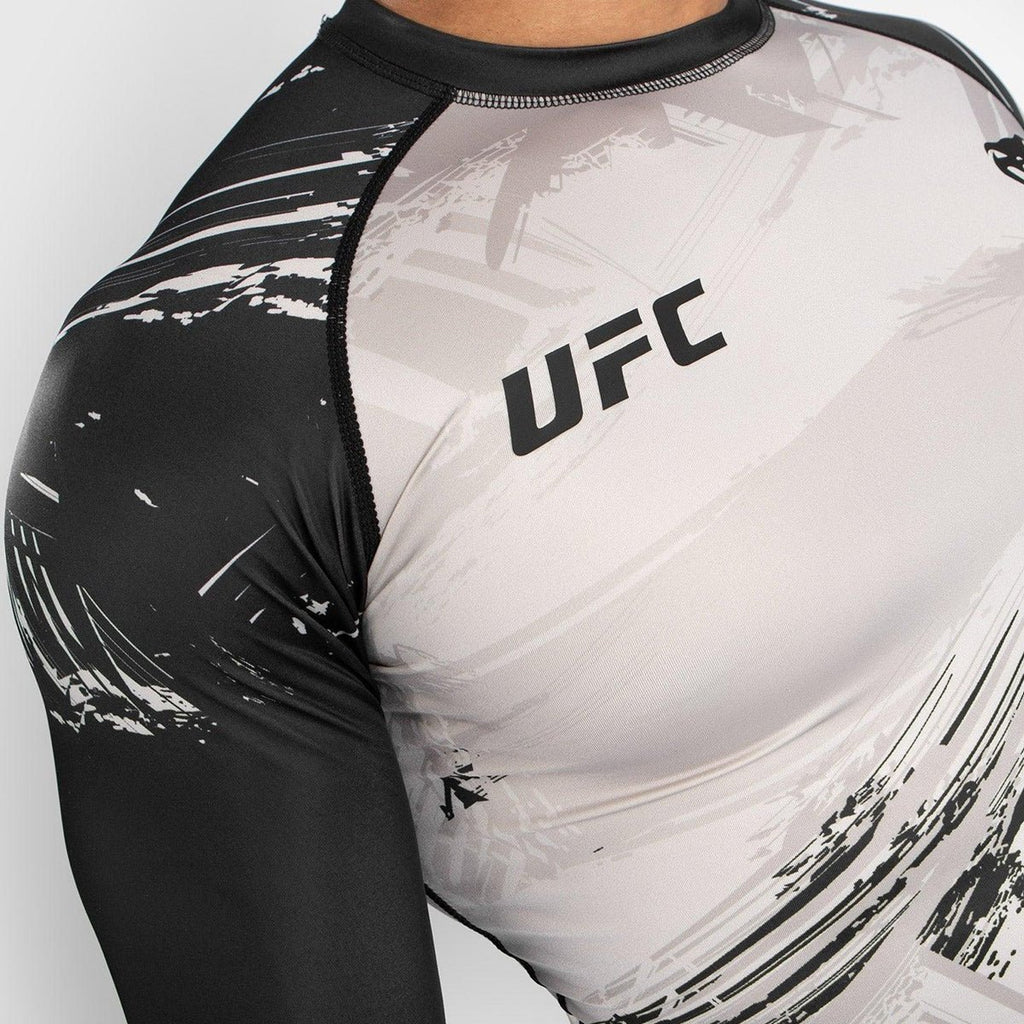 The Venum UFC Authentic Fight Week 2.0 Long Sleeve Rashguard is designed to meet the needs of high-level athletes and fighters. This is a compression garment engineered to provide perfectly applied pressure across the surface of the skin to help reduce recovery time.