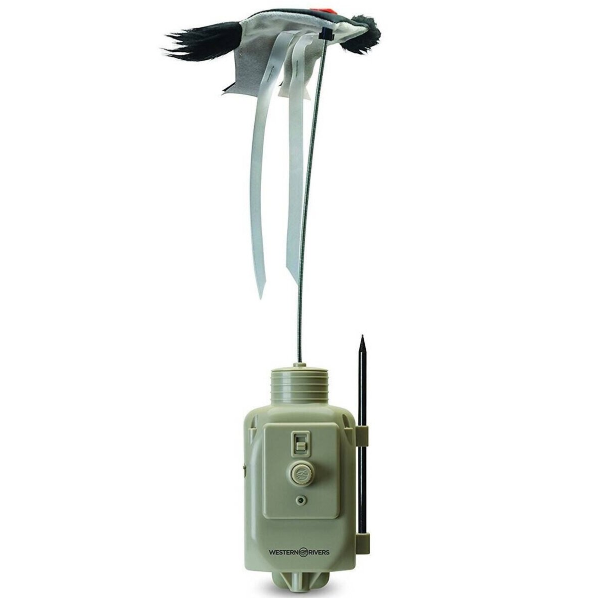 Western Rivers Mantis Pro Decoy is a motorized assembly that form fits and connects to the attachment area on the Mantis 100 or 400 caller. High speed ultra quiet motor with speed control. Sync control with Mantis 400. Powered by 1x4 AA batteries (batteries not included). Connection that syncs sounds with the movement of the motor. 2 stick assemblies (fur / kite) included with kit